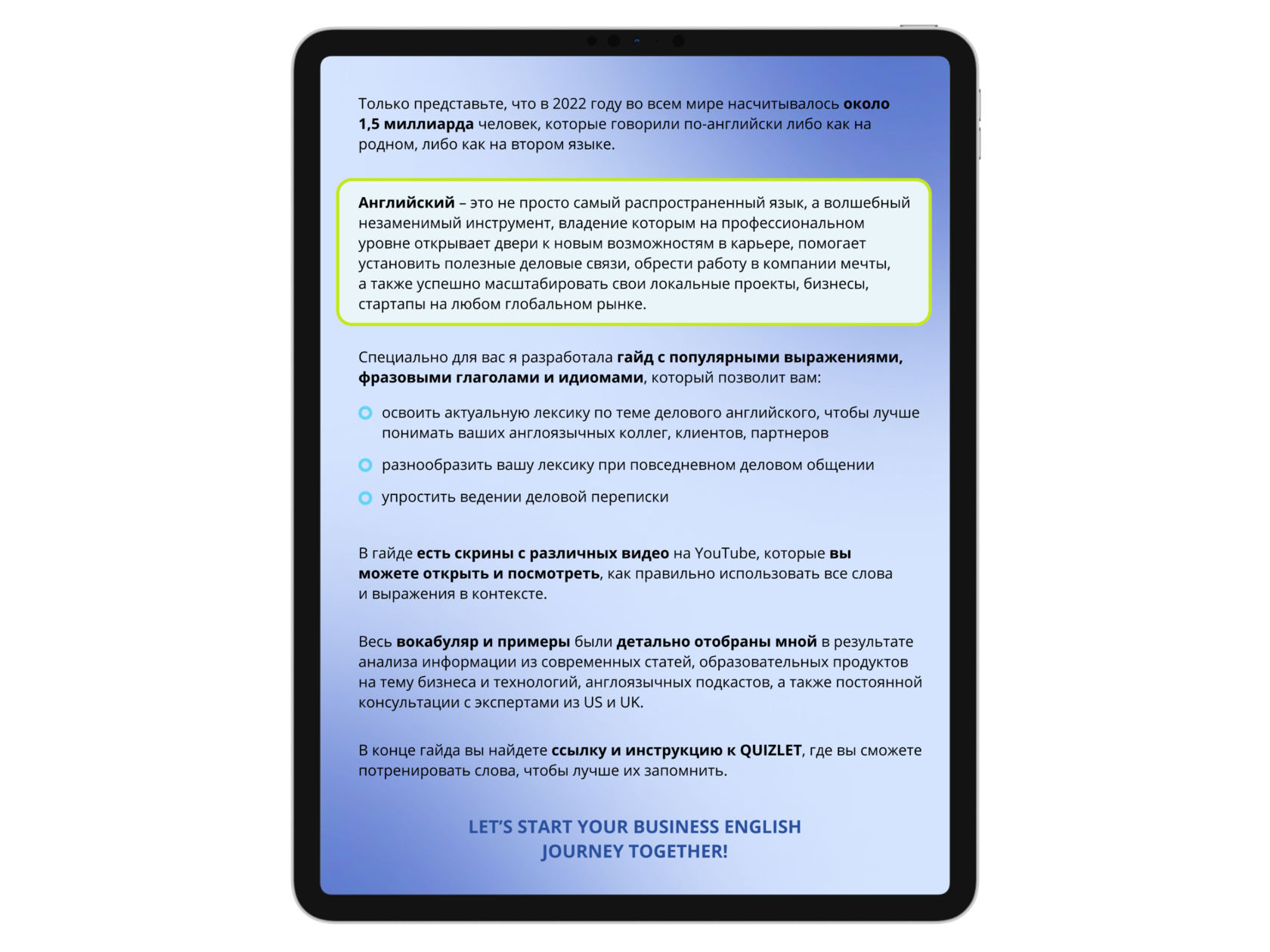 возможность бесплатно тренировать весь вокабуляр с помощью интерактивных карточек в Quizlet